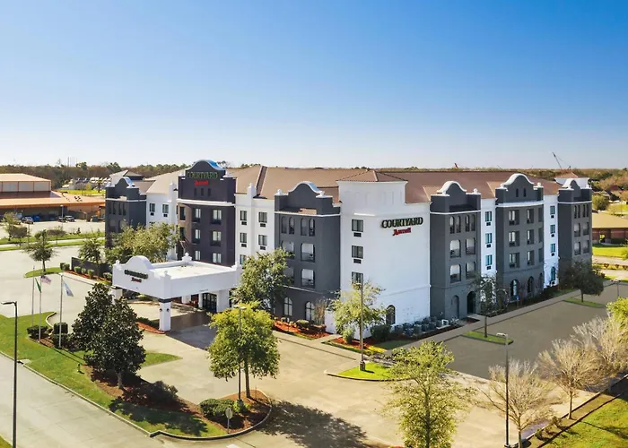 Courtyard By Marriott Houma, a 3-star hotel rated 8.3/10 on Booking.com, features a state-of-the-art lobby, an onsite restaurant, The Bistro, offering breakfast and dinner options, and a relaxing bar, Vieux Carre Lounge. Additional amenities include free Wi-Fi, fitness center, and both indoor and outdoor pools with a whirlpool.