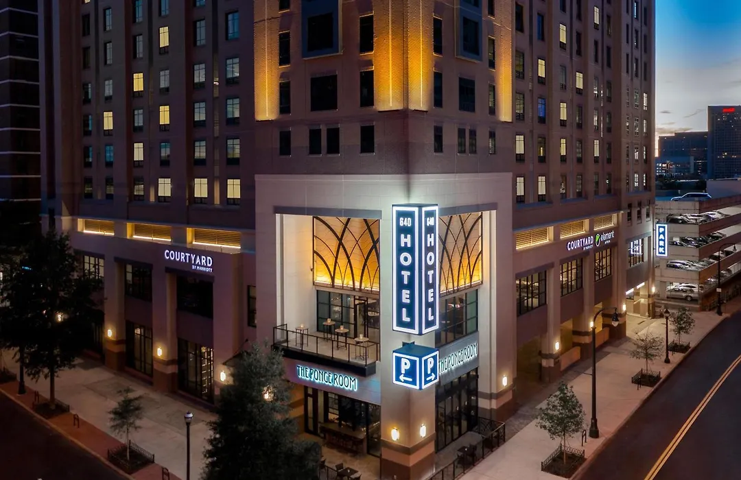 Dining options include The Bistro for breakfast, serving cooked-to-order items and Starbucks coffee, along with The Ponce Room Bar & Kitchen offering an elevated southern menu for dinner and brunch. Nearby dining options feature Livingston Restaurant and Mary Mac's Tea Room.
