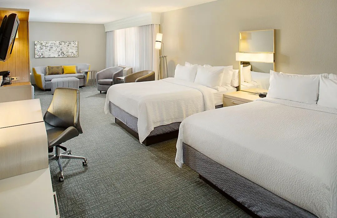Each of the 139 guest rooms at Courtyard Sacramento Midtown includes free Wi-Fi, 43" Smart TVs, mini-refrigerators, microwaves, coffee makers, and tea/coffee facilities. Extended stay suites are available, offering additional space and full kitchens.
