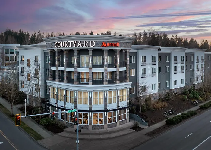 Courtyard By Marriott Seattle Kirkland is a modern hotel featuring contemporary accommodations and a Bistro offering premium Starbucks coffee. This 3-star Kirkland hotel offers various amenities including free Wi-Fi and meeting spaces totaling over 2200 sq. ft.