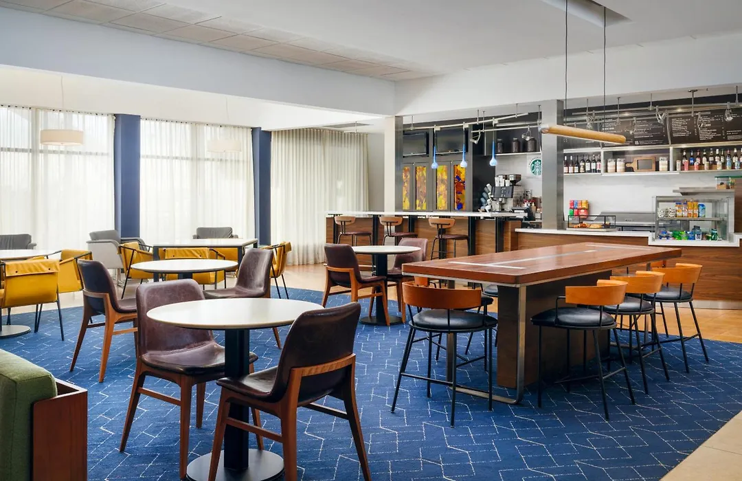 The Bistro serves breakfast and dinner options, featuring American cuisine and specialty beverages made with Starbucks coffee. Guests can enjoy a bar/lounge area for additional dining and socializing options.