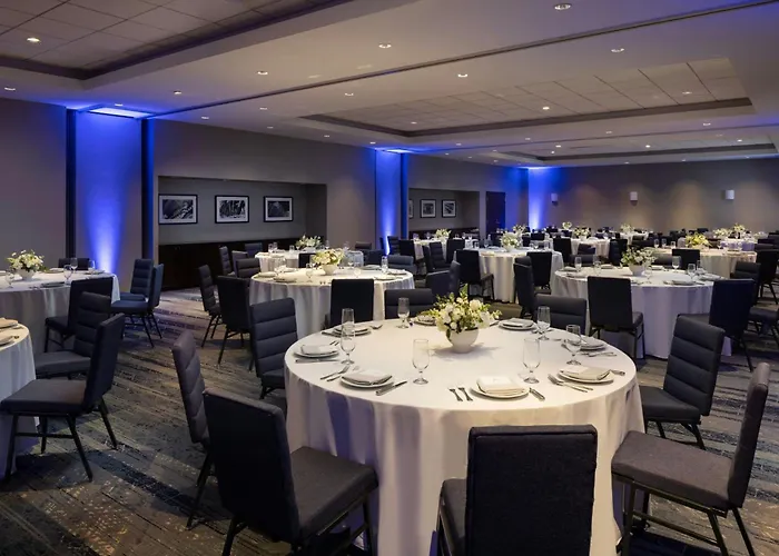 Dining options include Copper Fox Gastropub, which serves lunch and dinner with shareable plates and hearty meals. Guests can also stop by the on-site Starbucks for coffee and quick bites. The hotel provides a lobby lounge for cocktails and appetizers after exploring the area.