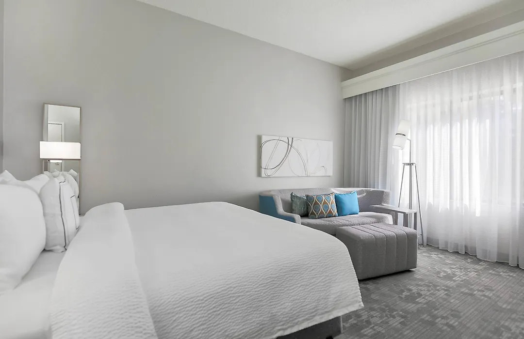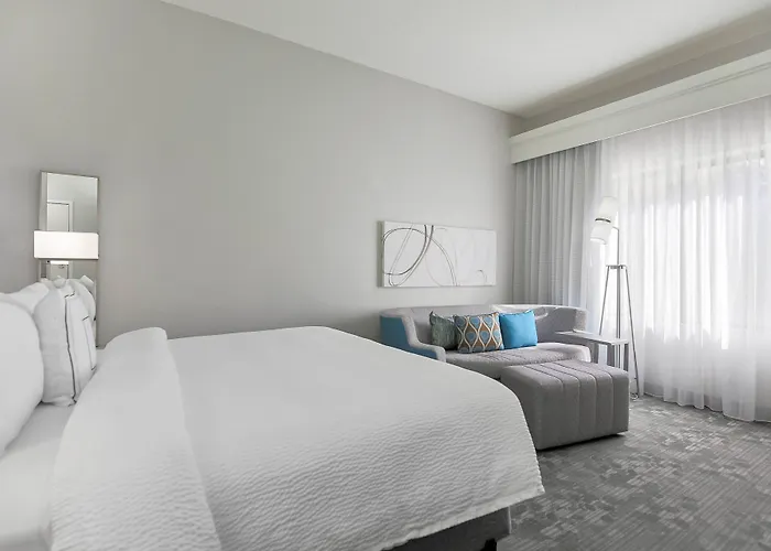 Rooms at Courtyard Tampa Brandon include premium bedding, flat-screen TVs, and air conditioning, catering to comfort and functionality. Some rooms feature spa options for an enhanced stay.
