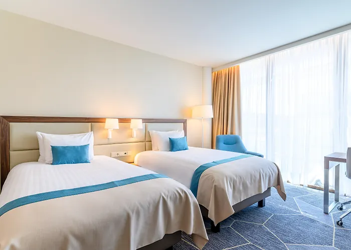 Crowne Plaza Maastricht By Ihg is a 4-star hotel set on the banks of the River Meuse, featuring a stylish restaurant and a well-equipped wellness center. The hotel offers modern conveniences like free WiFi and a business center, making it suitable for both leisure and corporate travelers.