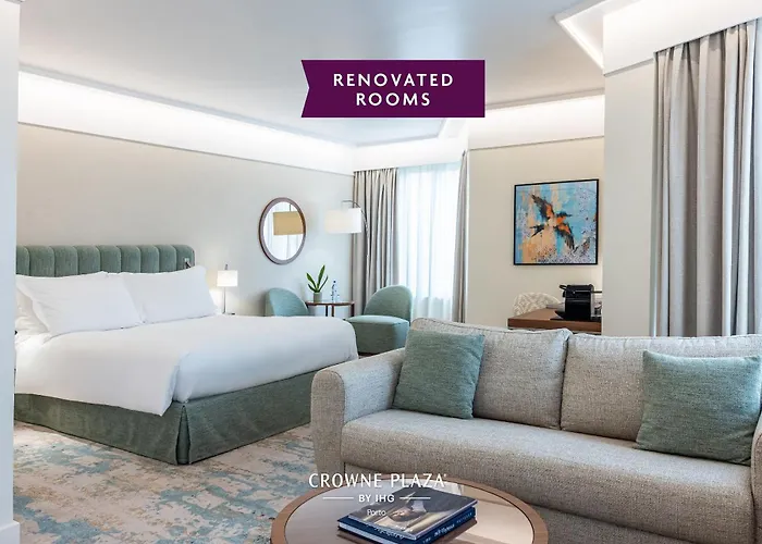 Rooms at Crowne Plaza Porto are designed for comfort, featuring plush beds, free high-speed internet, and flat-screen TVs. Guests may choose from Queen Bed Rooms with city views or spacious Junior Suites, some offering relaxation areas.