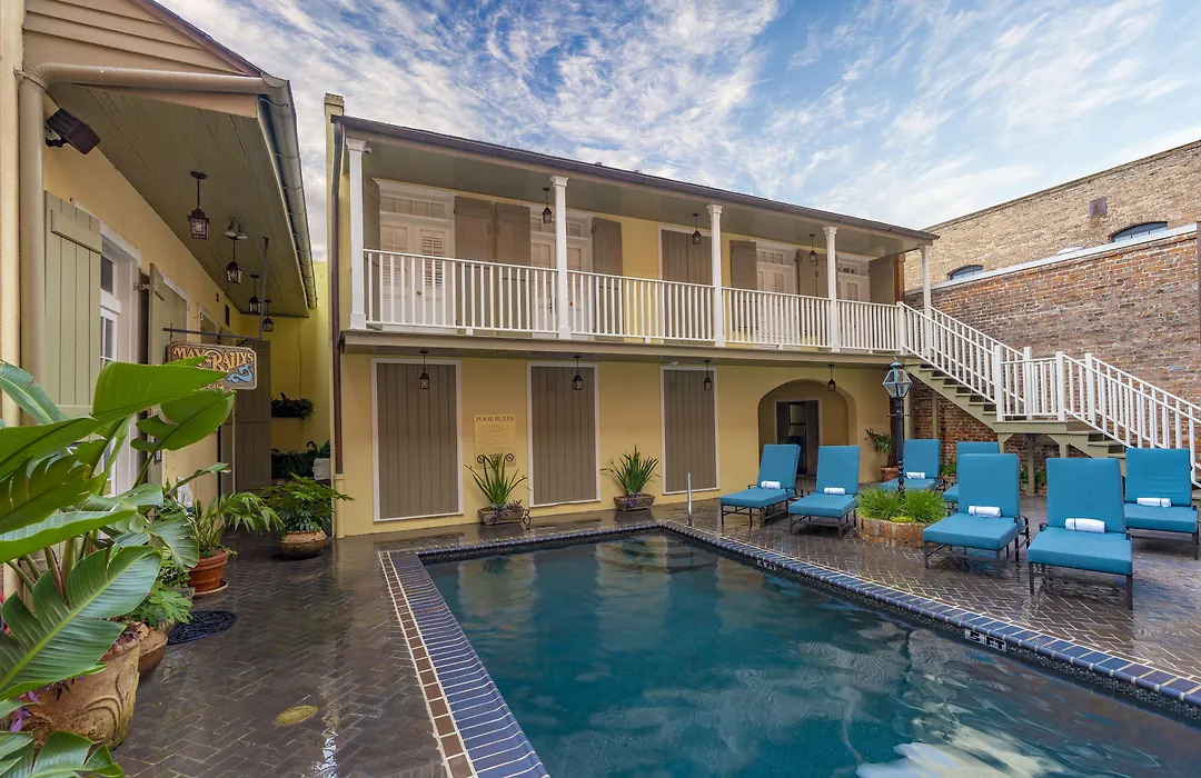 Guests at the Dauphine Orleans Hotel can unwind in the refreshing saltwater pool located in a serene courtyard. The hotel has a history steeped in haunted stories, attracting curious visitors. May Baily's Place often features live music on weekends, contributing to the lively experience.