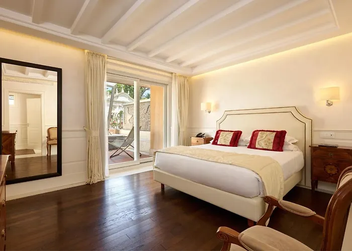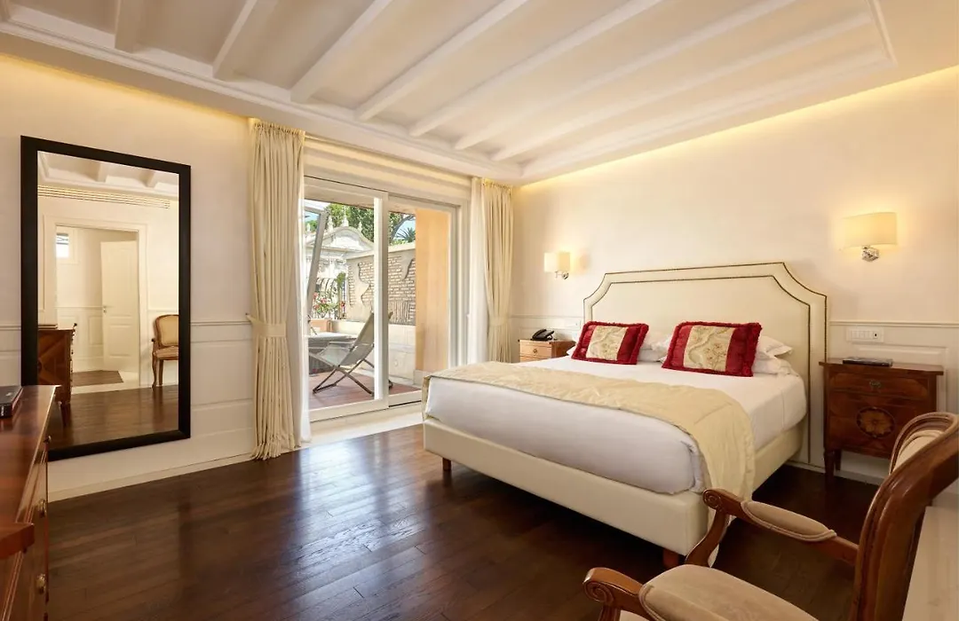 Rooms at Hotel Degli Artisti include Classic, Superior, and Deluxe Suites, all furnished with terracotta flooring. Many rooms offer views of the inner courtyard or the garden of St Isidore's College, along with amenities like a flat-screen TV and soundproofing.