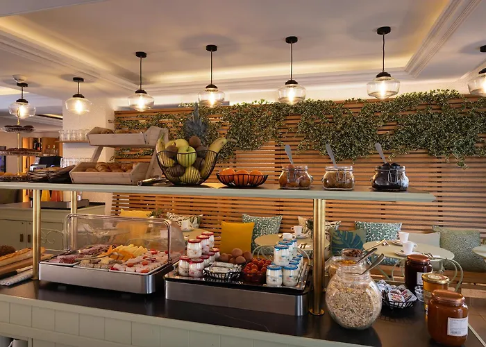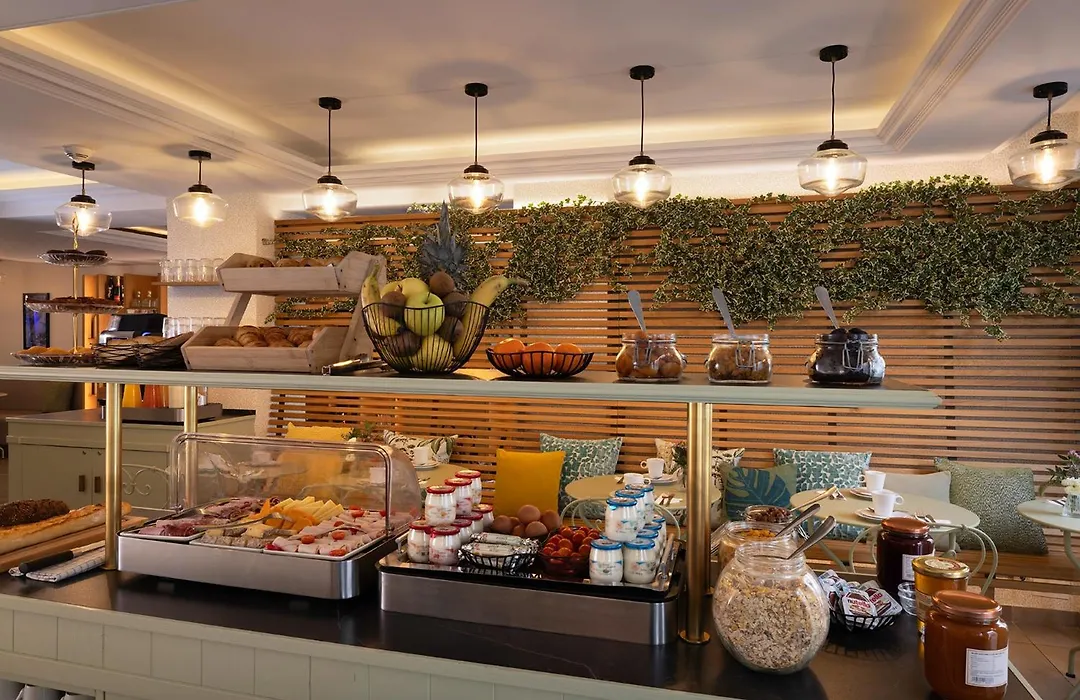 Guests can start their day with a buffet breakfast offered daily from 7 AM to 10 AM, either in the lobby or the courtyard. The Hotel Des Mines bar serves as a relaxation spot, complete with cozy seating both indoors and on the terrace for enjoying drinks.