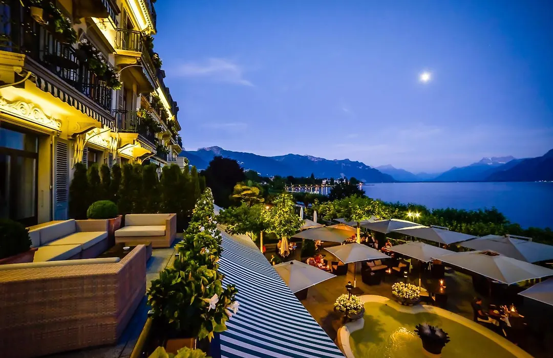 The hotel features spacious air-conditioned rooms with views of Lake Geneva, the Alps, or the old town of Vevey. Each room includes a minibar, flat-screen TV, and private bathroom. Suites offer separate living areas and terraces or balconies.