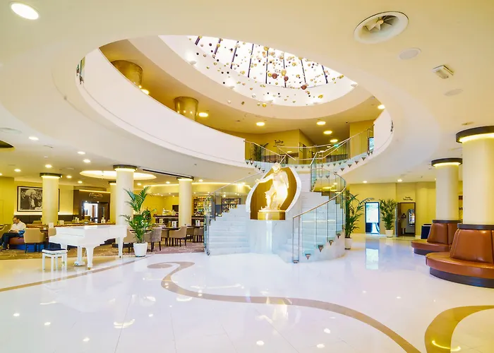 The wellness center includes a spa offering massages, a sauna, and a fitness center. Guests can also enjoy access to an executive lounge with a rooftop terrace and stunning views of the city. Entertainment options include live music events at the hotel bar.