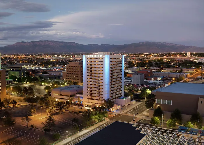 Doubletree By Hilton Hotel Albuquerque, a 4-star modern hotel, features a seasonal outdoor pool, on-site dining, and pet-friendly rooms. The hotel is directly connected to the Albuquerque Convention Center via an underground passage, accommodating guests seeking both convenience and accessibility.