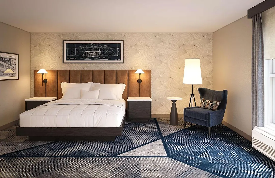 Doubletree By Hilton Dayton Fairborn offers spacious guest rooms equipped with King or two double beds, featuring microwaves, mini-refrigerators, and Keurig coffee makers. This 3-star Fairborn hotel includes amenities such as a heated indoor pool, a fitness center, and on-site dining at The Wright Place.