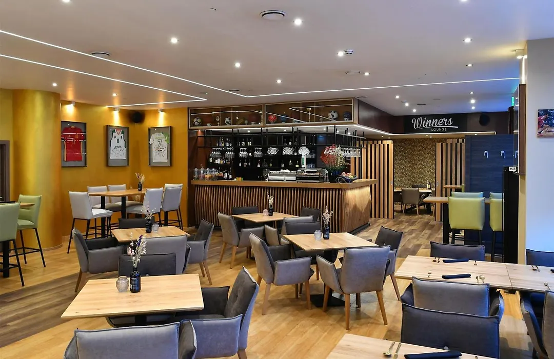 Dining options include the renovated Winners restaurant, which serves local dishes such as pršut and octopus carpaccio, as well as an à la carte menu. The Winners Lounge sports bar offers burgers named after different sports, alongside a selection of Slovenian beers.
