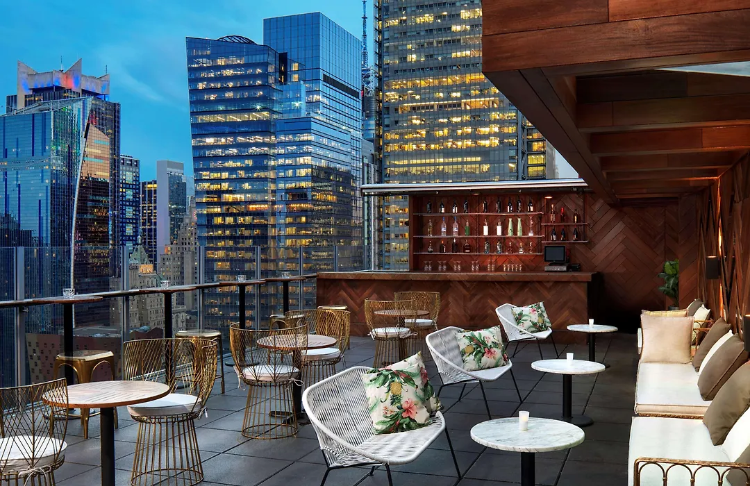 Doubletree By Hilton New York Times Square West features modern amenities and a rooftop lounge with 360-degree views of Manhattan. The 4-star New York hotel provides an on-site restaurant serving American cuisine and offers business facilities. Notable landmarks such as the Empire State Building and Broadway shows are within a 15-minute walk.