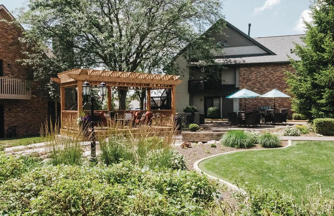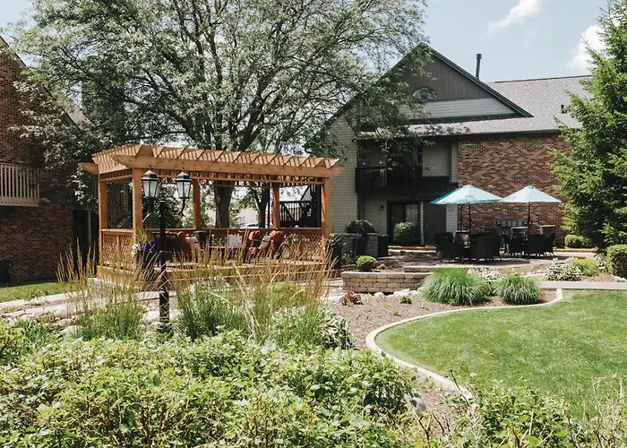 Leisure facilities include a landscaped area and a vibrant courtyard featuring the largest beer garden in central Illinois. Guests have access to a fitness center and can partake in local attractions like Miller Park and Eastland Mall, both within 0.3 miles.