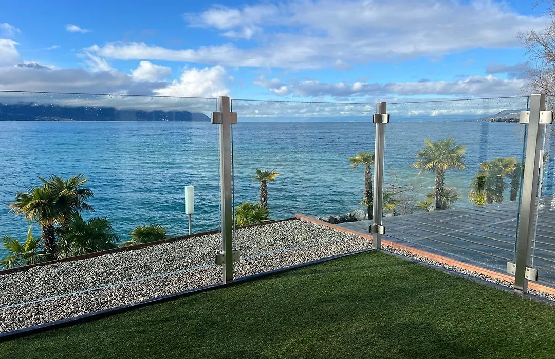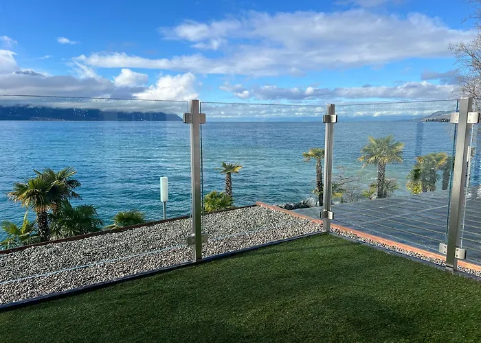 Hotel Eden Palace Au Lac offers 4-star accommodation with direct access to Lake Geneva and a terrace overlooking the water. The hotel features an outdoor swimming pool, a restaurant, and a private villa for group stays.