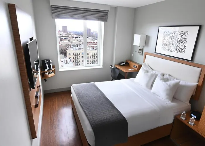 Edge Hotel Washington Heights, a 3-star boutique hotel with an 8.7/10 Booking.com rating, offers modern accommodations and thoughtful amenities in Manhattan's historic Washington Heights. Guests can enjoy a fitness center, complimentary Wi-Fi, and a Grab n' Go kiosk.
