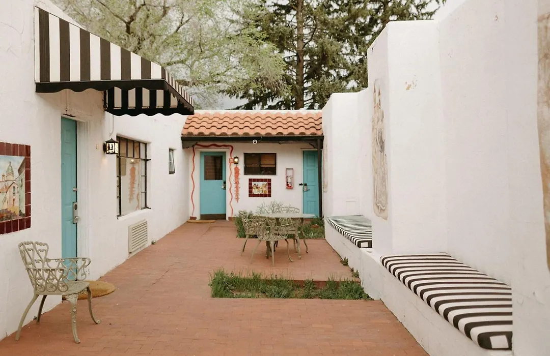El Rey Court, a 3-star Santa Fe hotel rated 8.2/10 on Booking.com, offers a unique blend of historic adobe architecture and modern amenities across a sprawling five-acre landscape. Guests can enjoy complimentary access to the Swim Club, as well as relaxing facilities and inviting dining options.