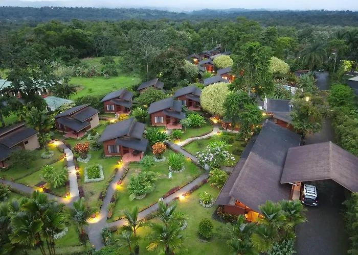 Located 9 miles from Aeropuerto de La Fortuna, the hotel offers transportation services and access to various attractions like Arenal Volcano and nearby hot springs. Public bus service is available for local travel.