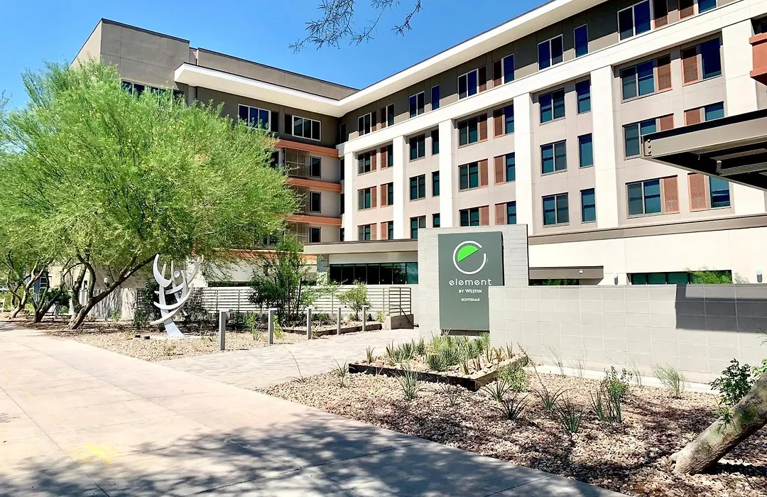 Element Scottsdale At Skysong, a 3-star extended-stay hotel, features eco-friendly practices and an outdoor swimming pool. Guests benefit from air-conditioned rooms with kitchenettes and complimentary breakfast options.