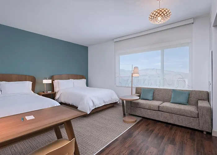 Element Palmdale, rated 8.7/10 on Booking.com, focuses on wellness and sustainability, offering spacious guest rooms equipped with in-room kitchens and spa-like bathrooms. This 3-star Palmdale hotel is part of Marriott's sustainability initiative.