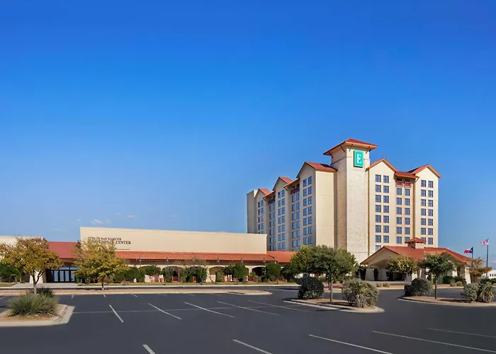Embassy Suites San Marcos Hotel Conference Center, a 4-star establishment with an 8.1/10 rating on Booking.com, features an outdoor pool, jacuzzi, and full-service spa. This San Marcos hotel caters to travelers seeking modern accommodations, conference facilities, and flexible dining options.