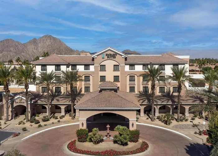 Embassy Suites La Quinta Hotel & Spa is a 4-star hotel featuring a full-service spa, outdoor pool, and pet-friendly accommodations. Guests can enjoy a free cooked-to-order breakfast and complimentary evening reception daily. The hotel includes various amenities tailored for both leisure and business travelers.