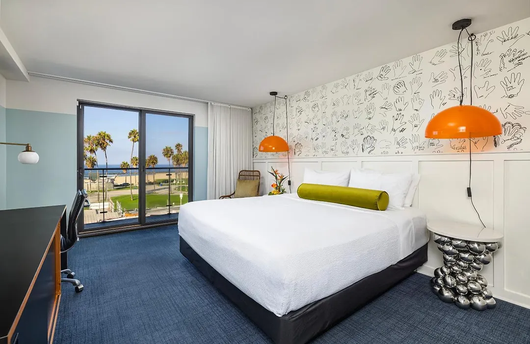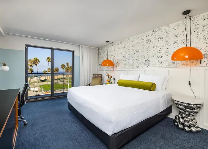 Hotel Erwin Venice Beach, a 4-star Los Angeles hotel, features eclectic décor and ocean views, located steps from Venice Beach and the famous Venice Beach Boardwalk. Guests enjoy several amenities including complimentary Wi-Fi, a rooftop lounge, and on-site dining options.