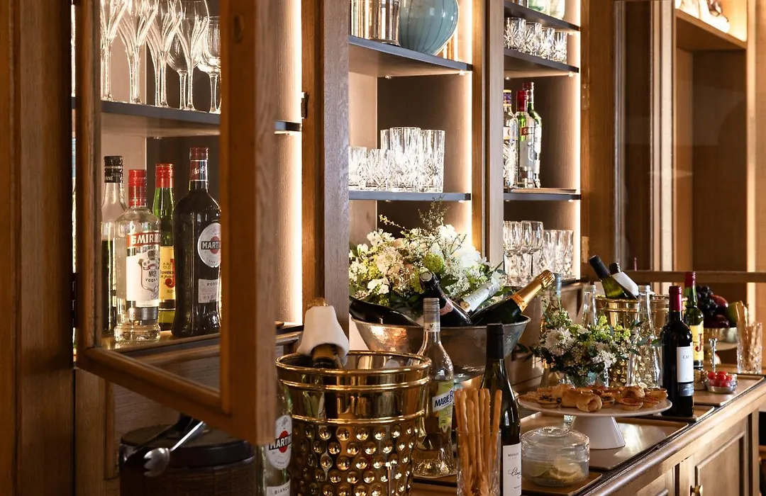 Recreational amenities comprise a fitness center complete with a sauna and steam room. Guests can also access a well-stocked library, providing a tranquil space to unwind with a book by the fireplace.
