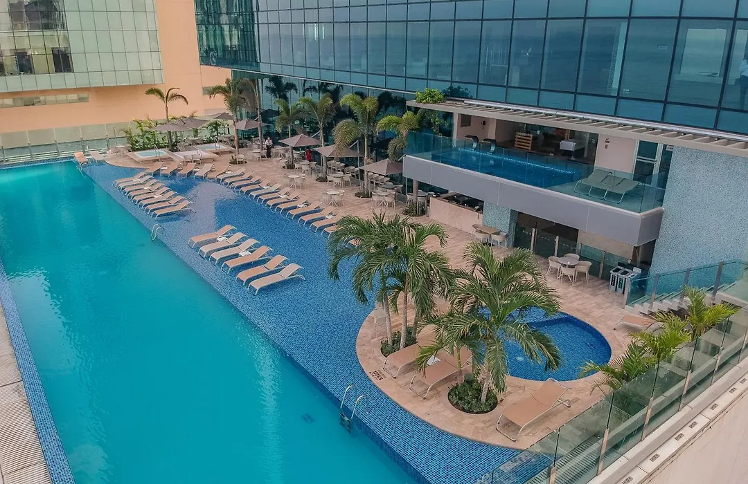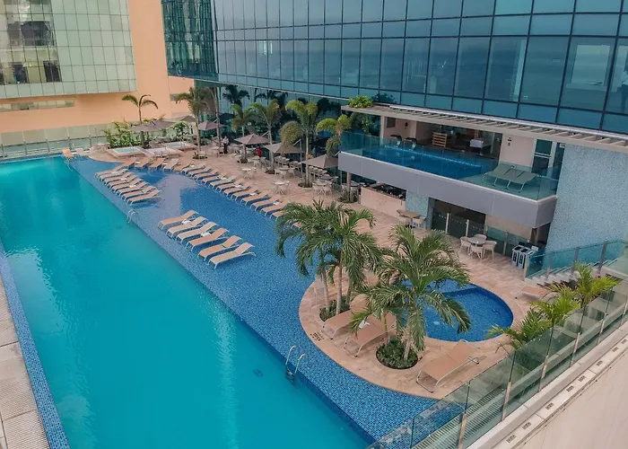 Estelar Cartagena De Indias Hotel Y Centro De Convenciones, a 5-star Cartagena hotel rated 8.9/10 on Booking.com, features 339 rooms with ocean views and a convention center accommodating up to 1000 guests. The hotel includes an infinity pool, a 51 Sky Bar, a full-service spa, and offers pet-friendly accommodations.