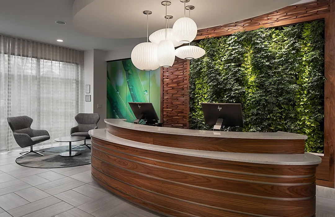 The Alpharetta hotel offers flexible accommodations, including spacious rooms designed for wellness. Guests can relax with plush bedding, mood-changing LED lights, and spa-inspired showers. In addition, every room features a desk and kitchenettes are available in select suites.