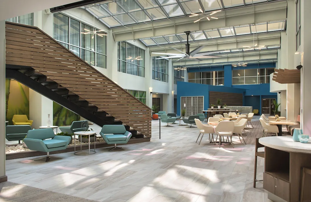 Dining options available include EVEN Kitchen & Bar, which serves fresh and healthy entrees. Guests can enjoy signature cocktails and desserts while seated in a contemporary dining space.