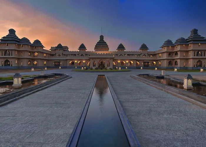 The hotel offers elegantly designed suites and villas, including Palace Suites and Private Pool Villas, reflecting the luxurious architecture of the Vijayanagara Empire. Each suite features a private balcony with a shallow Water-jet Pool, and lavish bathrooms that ensure a comfortable and private experience.