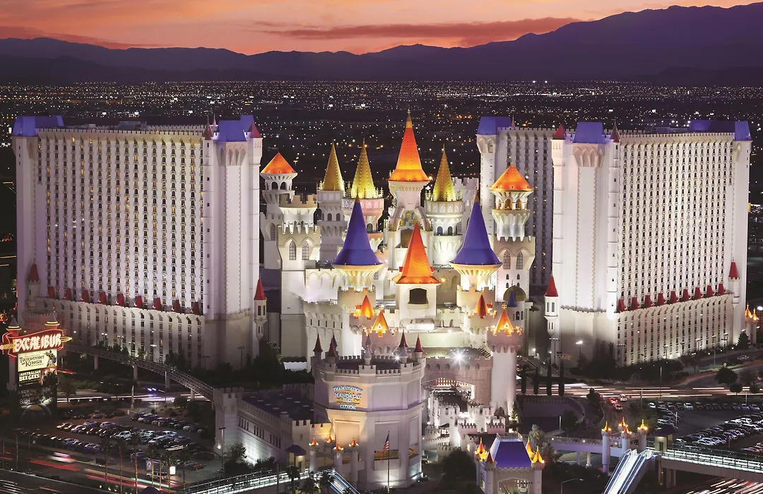 Excalibur is connected to the Las Vegas Strip, making it accessible to multiple attractions such as the MGM Grand and T-Mobile Arena within walking distance. Airport transportation includes proximity to McCarran International Airport, serviced by hotel shuttles and rideshare options.