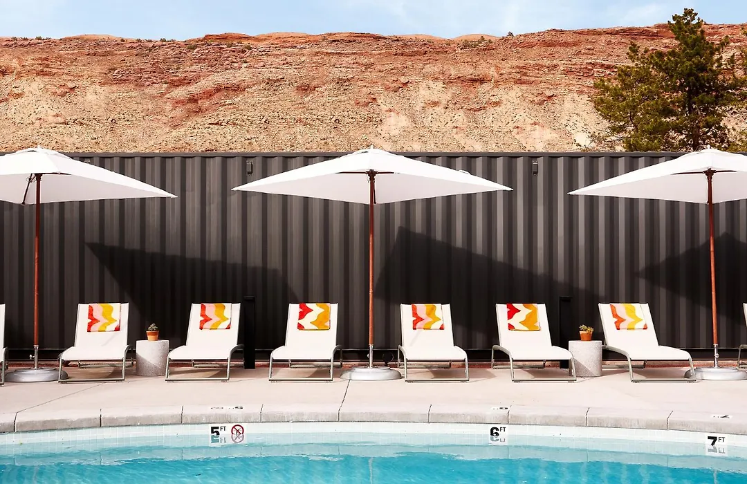 Field Station Moab is a 4-star hotel that offers unique accommodations ranging from van life spots to multi-guest rooms. Guests benefit from amenities like free WiFi, an outdoor pool, and a Gear Shop for adventure essentials.