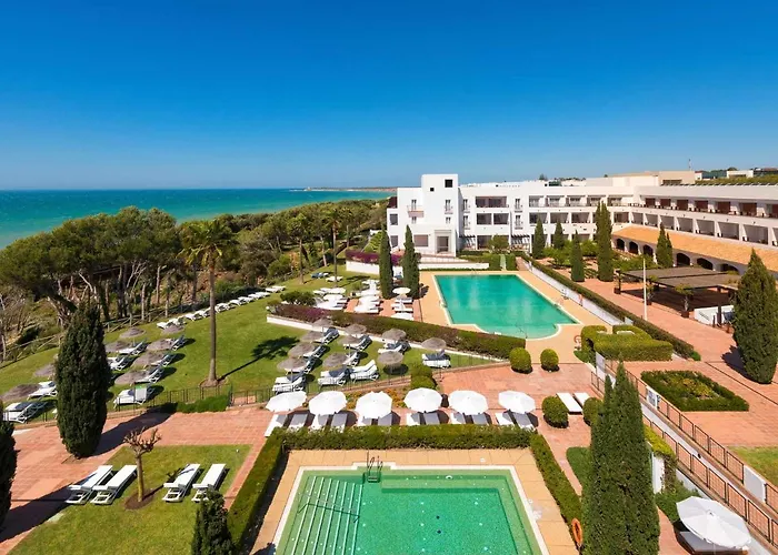 Hotel Fuerte Conil-Resort is a four-star beachfront property featuring 5 pools, a wellness spa, and expansive gardens. It is situated on La Fontanilla Beach, a short 10-minute walk from the village center, making it convenient for leisure and family activities. The hotel boasts a rating of 9.0/10 on Booking.com.