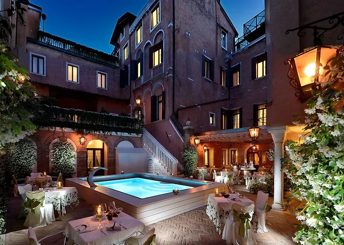 Hotel Giorgione, a 4-star property rated 8.5/10 on Booking.com, features an exclusive courtyard with a salt-water whirlpool. This charming hotel in Venice combines authentic Venetian style with modern amenities.