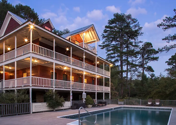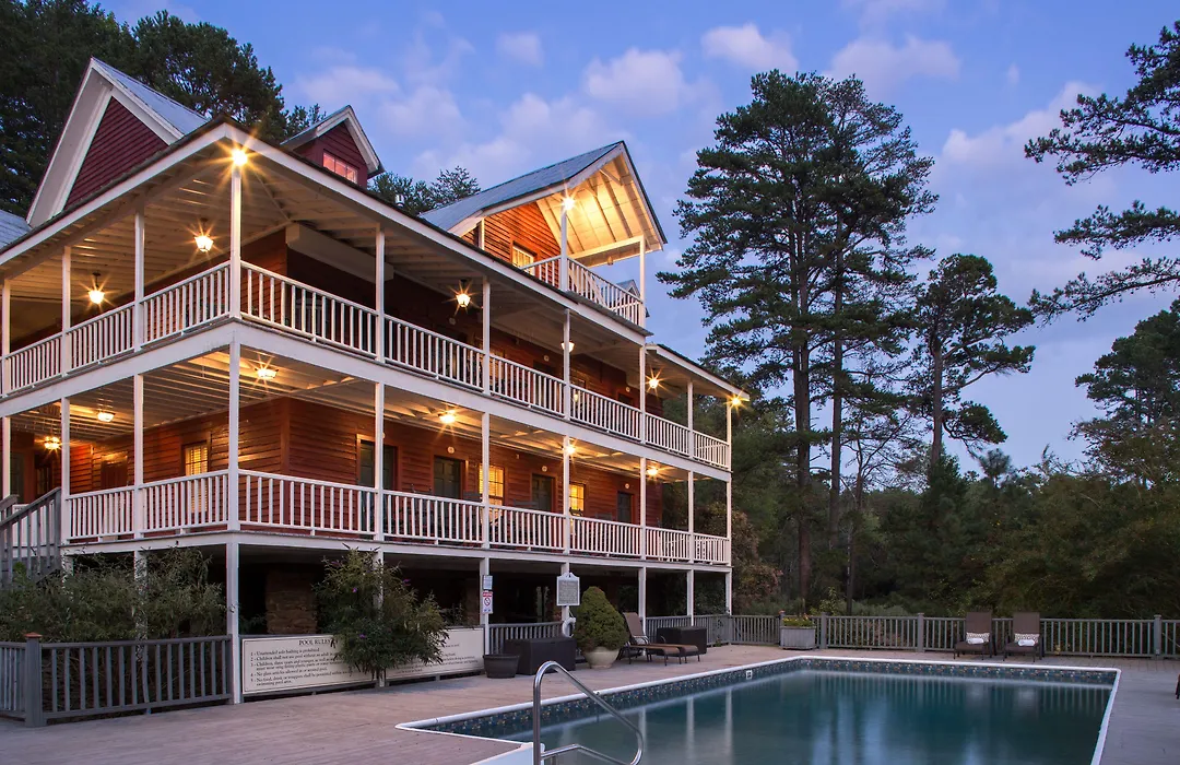Glen-Ella Springs Hotel & Restaurant, a 3-star Clarkesville hotel rated 8.8/10 on Booking.com, offers cozy accommodations set amidst the North Georgia Mountains. Guests can enjoy an award-winning restaurant and serene outdoor spaces with seasonal gardens and a swimming pool.