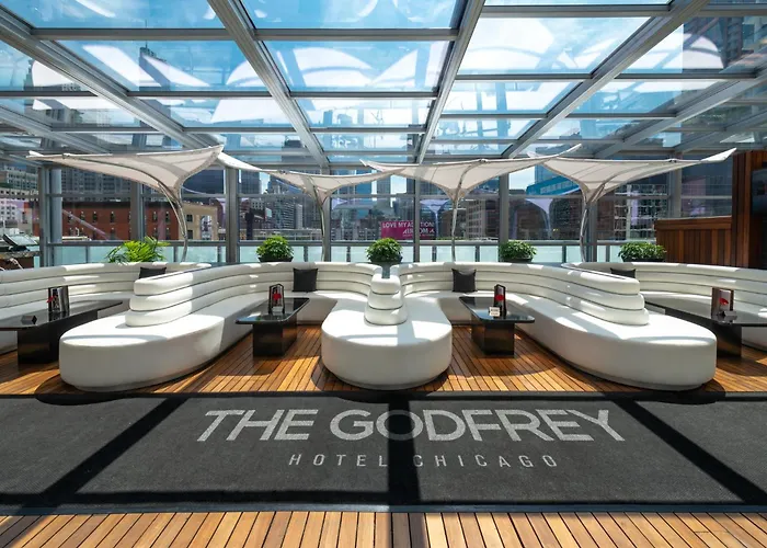 Godfrey Hotel Chicago (4-star, 8.4/10 on Booking.com) offers a blend of modern style and unique design in the River North area. Amenities include a rooftop lounge with a retractable roof, an upscale restaurant, and high-end meeting facilities.