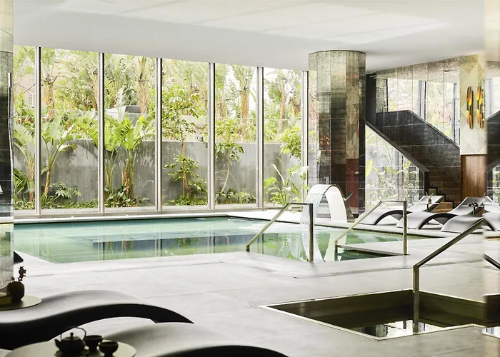 A state-of-the-art fitness center is available to guests, along with extensive spa facilities for relaxation. The Grand Hyatt Barcelona also features a large outdoor pool and private tropical gardens for leisure activities.