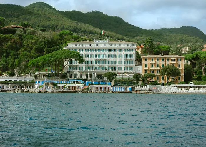 Grand Hotel Miramare merges traditional grand hotel spirit with modern elegance, set in a turn-of-the-century building adorned with trompe-l'oeil frescoes and wrought-iron balconies. This 5-star Santa Margherita Ligure hotel offers a private beach and a curvaceous saltwater pool surrounded by lush gardens.
