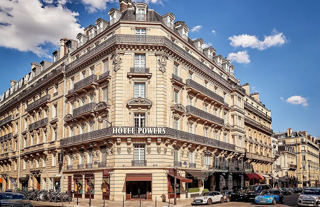 Grand Powers Hotel, a 5-star boutique hotel in the 8th arrondissement, features 50 individually decorated rooms and a range of luxury amenities including a spa with a Turkish bath, sauna, and hot tub. The property also boasts a restaurant offering seasonal cuisine and an elegant bar for cocktails and light fare.