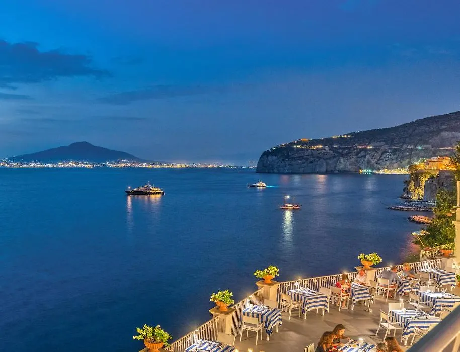 Services include a 24-hour front desk and a variety of event spaces, including two Gala halls with sea-view terraces for receptions and weddings. The hotel is conveniently located only 1640 ft from Sorrento's main square and close to public transportation.