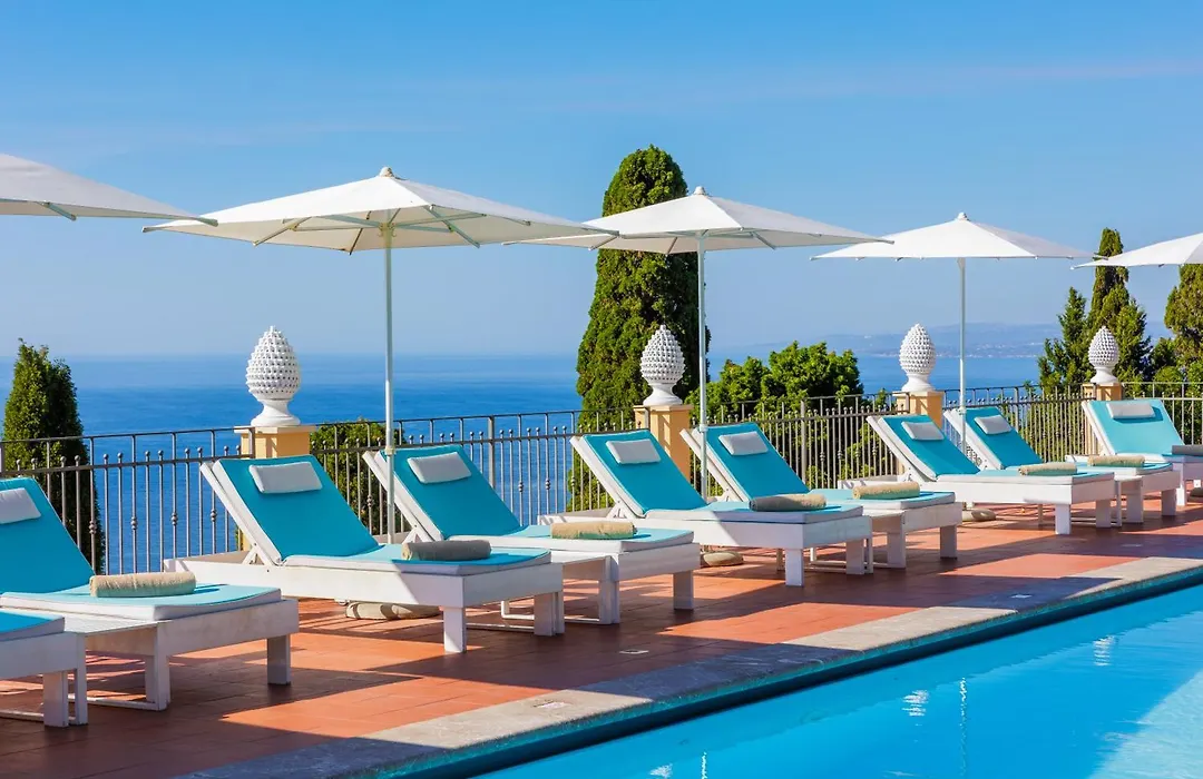 Grand Hotel San Pietro Taormina features 63 elegant rooms with stunning views of the Ionian Sea and Mount Etna. This 5-star boutique hotel offers a large outdoor pool, a wellness spa, and fine dining at the Giardino degli Ulivi restaurant, making it a distinguished choice for an upscale stay.