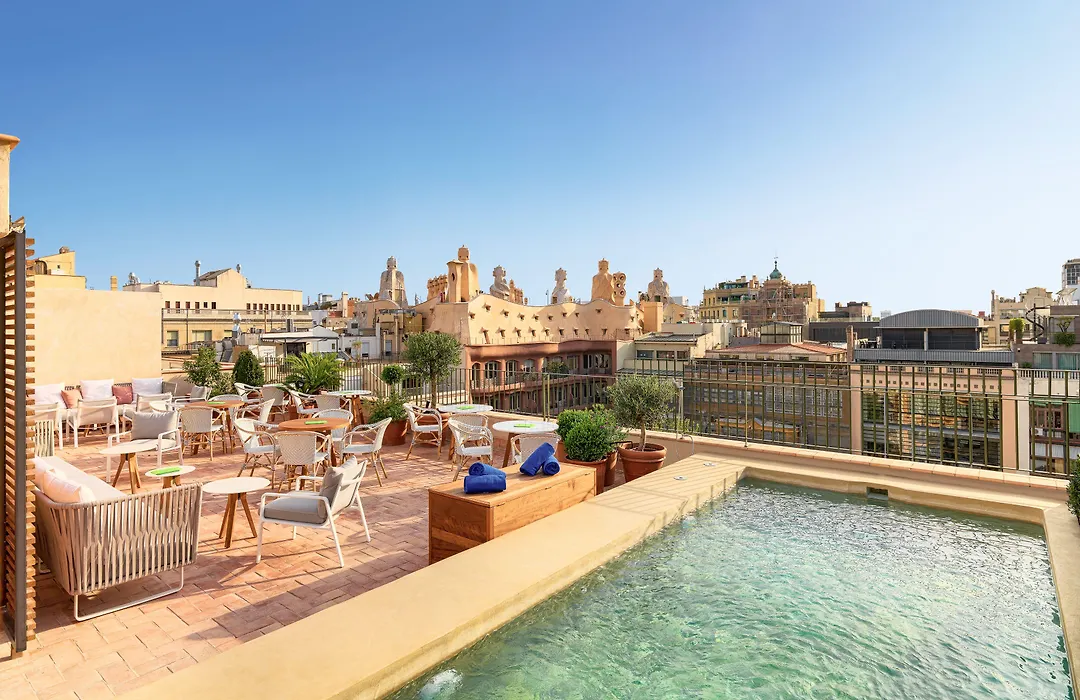H10 Casa Mimosa 4* Sup is an exclusive hotel situated in Eixample, featuring modern elegance alongside traditional touches. This 4-star superior Barcelona hotel offers amenities including an internal garden with swimming pool, a rooftop bar with views of La Pedrera, and an on-site restaurant with natural light.