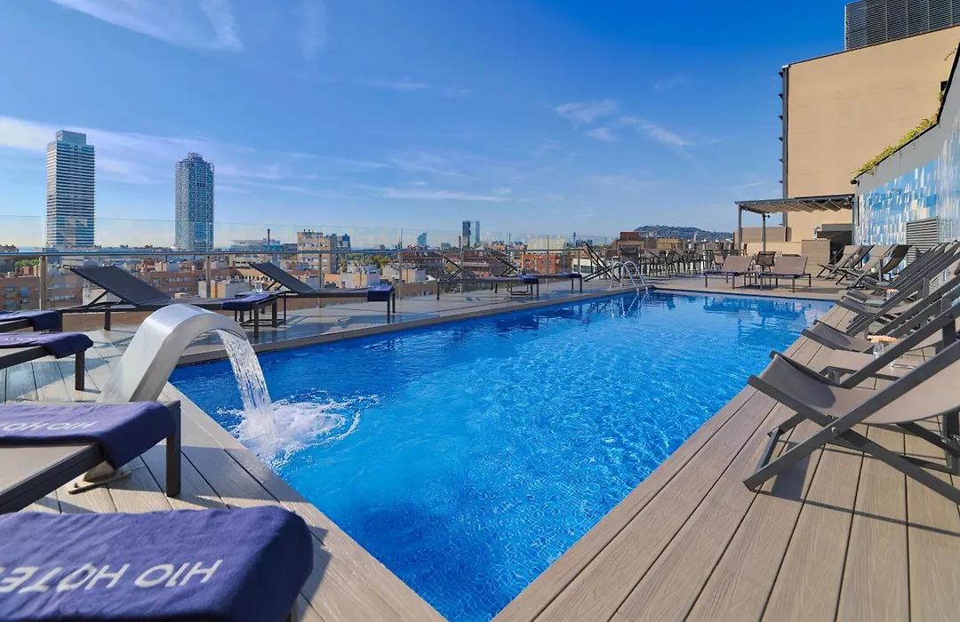 H10 Marina Barcelona is a 4-star hotel with an 8.4/10 rating on Booking.com, featuring extensive services including a swimming pool with city views and a Despacio Spa Centre. Guests can enjoy meals at the Dionissos Restaurant and relax in chill-out areas with live music.