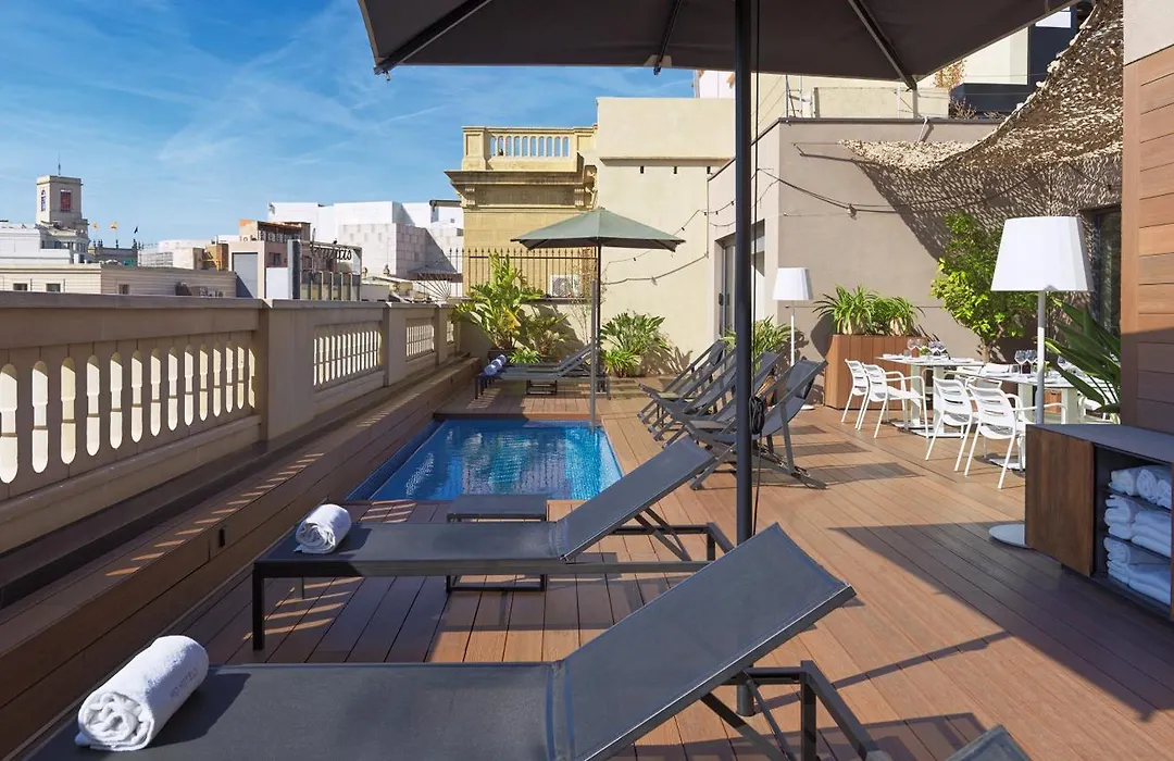 The hotel is centrally located, just a short walk from prominent attractions such as the Cathedral of Barcelona and Las Ramblas. Public transport options include Urquinaona subway station and Placa de Catalunya station, both accessible within five minutes on foot.