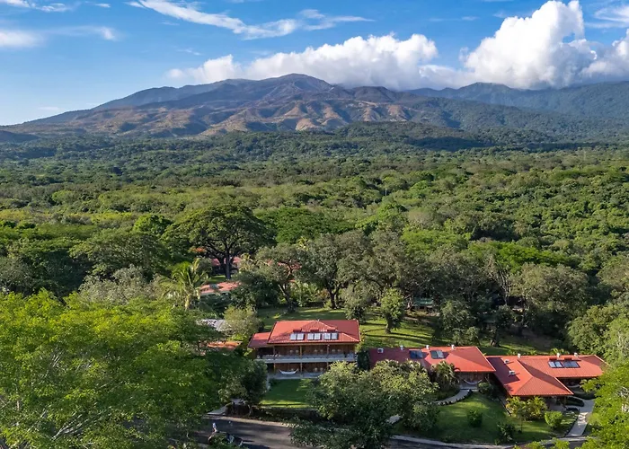 Hacienda Guachipelin Volcano Ranch Hotel & Hot Springs is situated 22 miles from Liberia International Airport and offers shuttle services. The surrounding area features significant landmarks such as Rincon de la Vieja Volcano and numerous wildlife viewing opportunities. The hotel is dedicated to sustainability, operating with renewable energy and promoting eco-friendly practices.