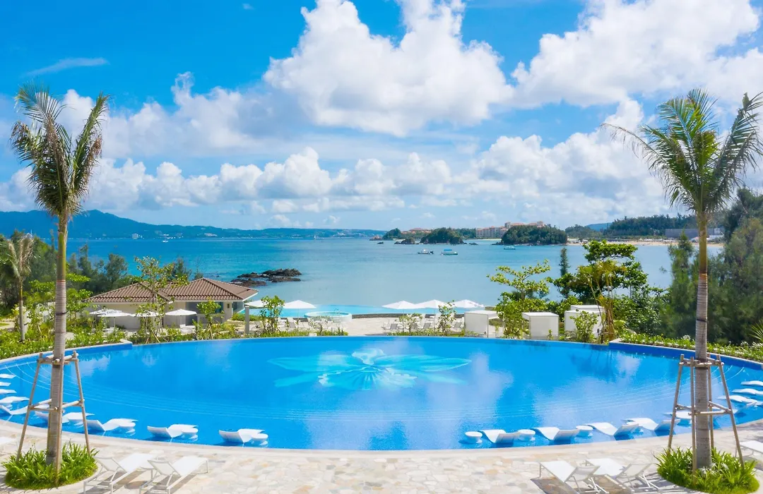 Halekulani Okinawa, a 5-star Onna hotel rated 9.3/10 on Booking.com, features ocean-view rooms and a range of upscale amenities including a restaurant, fitness center, and bar. This luxurious property also boasts an outdoor swimming pool and an indoor pool.