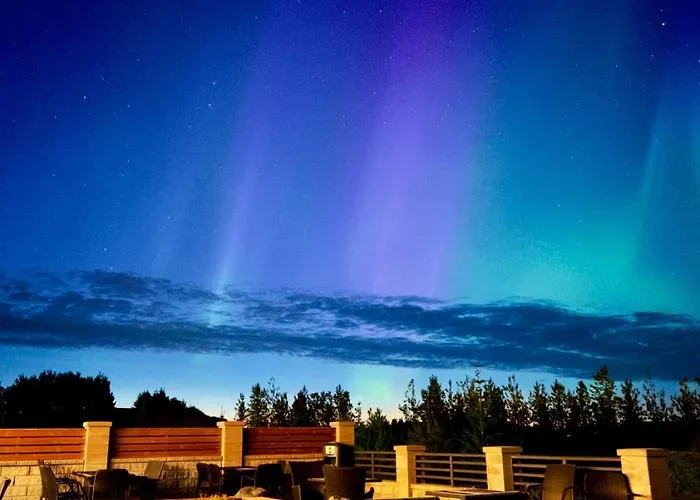 The hotel's restaurant serves traditional Icelandic food alongside international dishes, utilizing fresh, locally produced ingredients. Guests can also enjoy a variety of drinks at the relaxed hotel bar with an outdoor terrace.